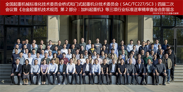 2024年9月24日至27日在新疆五家渠市,隆重召開全國起重 機(jī)械標(biāo)準(zhǔn)化技術(shù)委員會(huì)橋式和門式起重機(jī)分技術(shù)委員會(huì)四屆二次會(huì)議暨《冶金起重機(jī)技術(shù)規(guī)范 第 2 部分:料箱起重機(jī)》等三 項(xiàng)行業(yè)標(biāo)準(zhǔn)送審稿審查會(huì),對 2024 年橋門式起重機(jī)標(biāo)準(zhǔn)化工作 進(jìn)行總結(jié)回顧,對 2025 年重點(diǎn)工作進(jìn)行研究部署。
